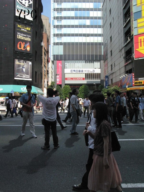 秋葉原にそびえる高層ビル、鏡状の壁面がアキバの住人を照らし出す
