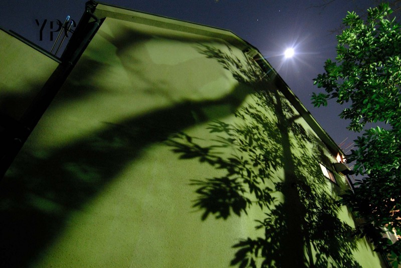自宅近所には大樹の影の写る壁があり満月を待って撮影