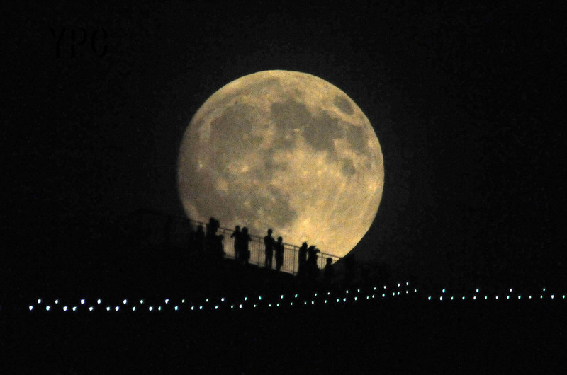 六本木ヒルズの展望台から中秋の名月を楽しむ人々