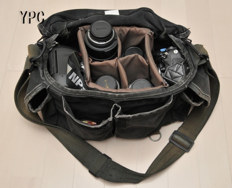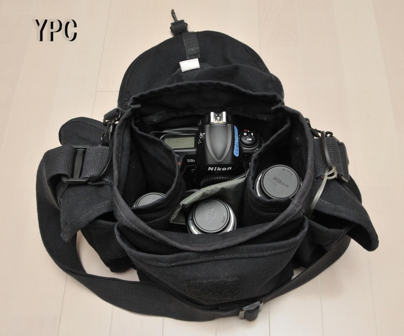 ◇定番のF-2というモデルがあり、これにはボディ2台、レンズ4本、ストロボ2個が問題なく入るので筆者もこれをメインに使っている。汚れてくると洗剤でゴシゴシ洗え、特に破れたりしないので、色落ちを気にしなければ一生ものとして使える。その他に機材構成により合計3つのドンケのバッグを使い分けている。