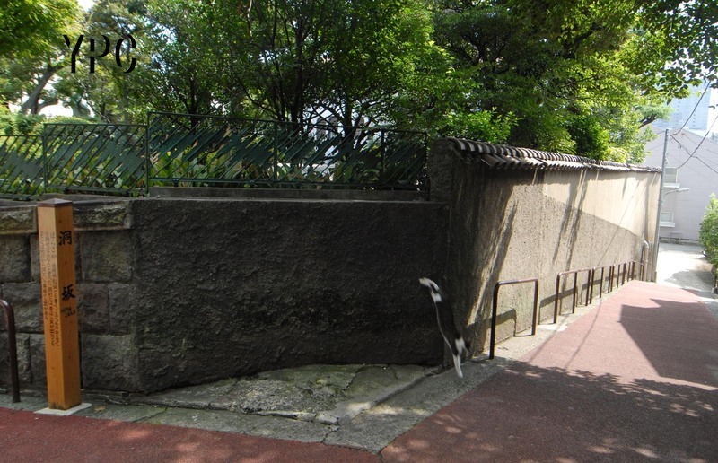 洞(ほら)坂をワイドで撮っていると猫が登場