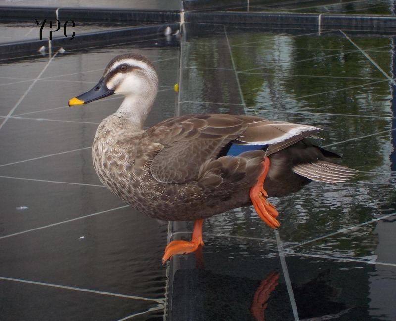 ビルの谷間の池にカモが、動かないので最初オブジェと勘違いしてしまった