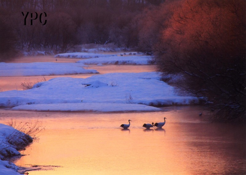 朝日に染まる樹氷
