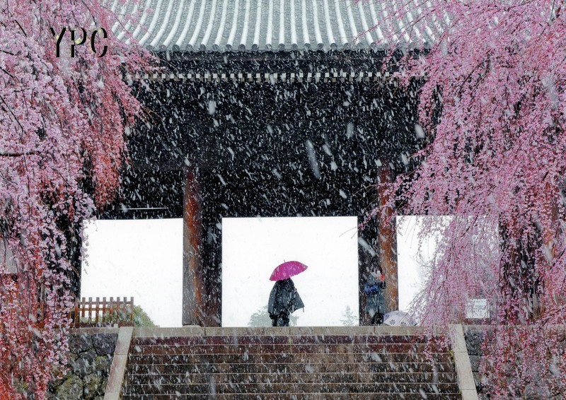 雪ふる門