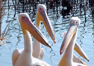 釣り人と鷺