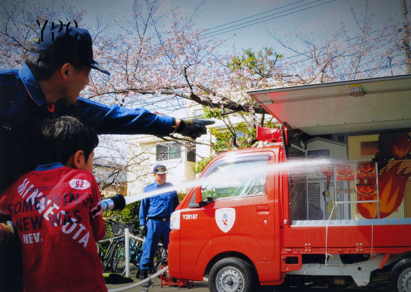 消火訓練あそこを狙え