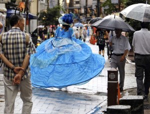 踊り終わって雨の中