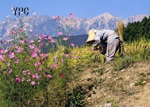 山麓の稲刈り
