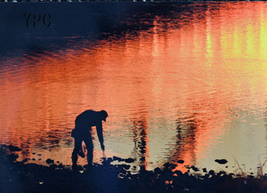 夕日の中で