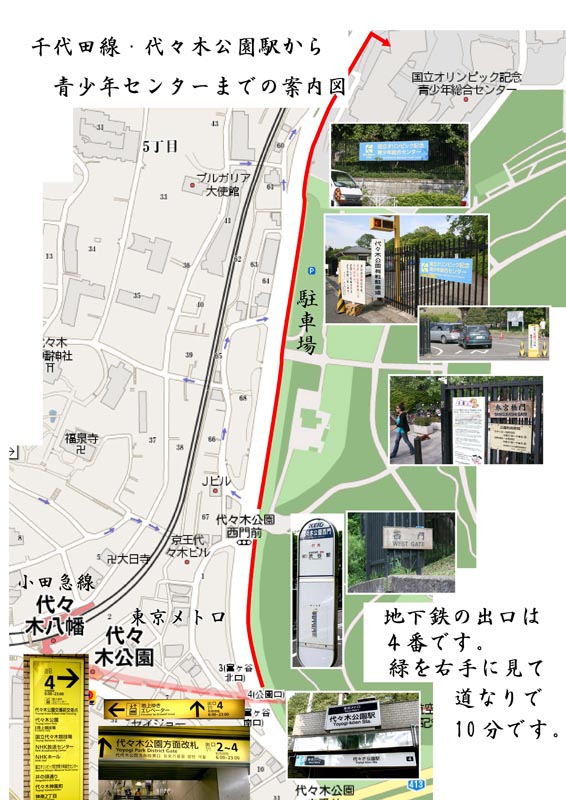 地下鉄・代々木公園駅から青少年センターへの地図、10分くらい歩きます