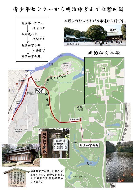 青少年センターから明治神宮への地図、撮りながら歩いて30分ほどです