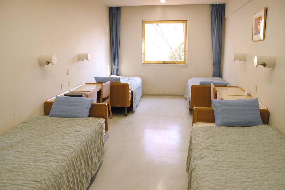 | 宿泊施設にはベッドが置かれ、豪華温泉のようにはいきませんが、小ぎれいでわりと広々しています。ただし格安の施設だけに、シーツは自分で敷き、冷蔵庫もありません。基本的に1室数名の相部屋となります。 |