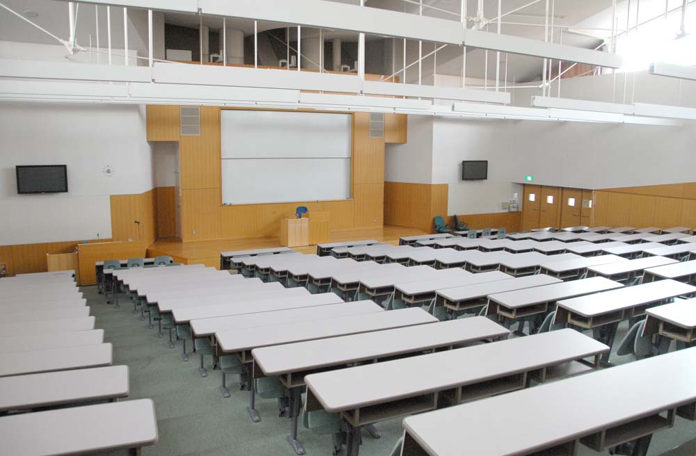 | 300人収容できるセミナールーム。大学の大講義室のようにスリバチ状になっています。ここで立木先生の講演を大勢のYPC会員が聴講する姿は壮観でしょう。 |