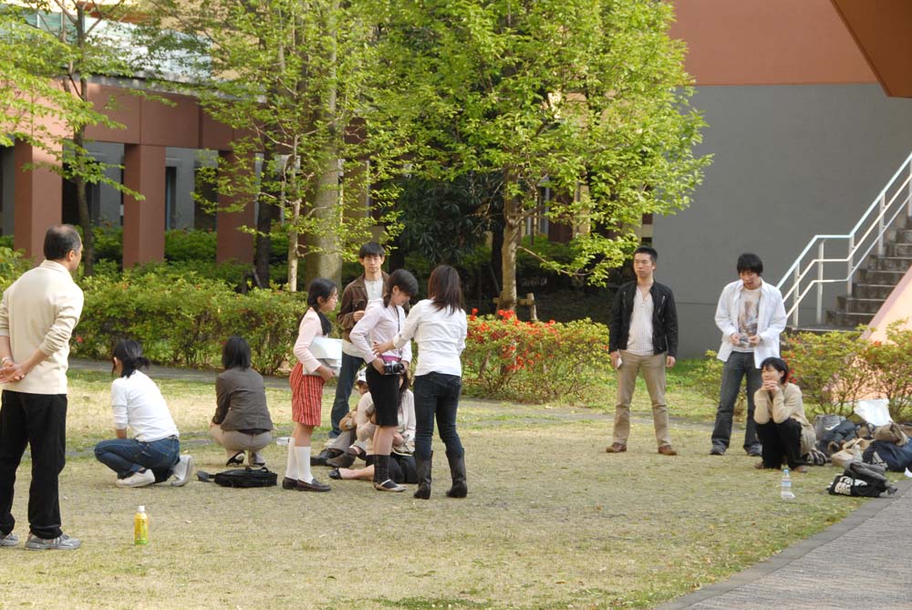 | 中庭では演劇の練習が行われていました。 |