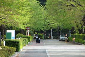 | ちょっと裏手に行くと緑が多く、並木道もあります。 |